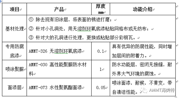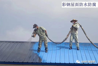高性能聚脲防水材料在彩鋼瓦防水中應(yīng)用,涂層致密、無接縫、抗?jié)B透,即使受到外界的熱脹冷縮,涂膜也不會(huì)開裂,而且還能將彩鋼瓦整體“裹住”,起到防水作用,能有效阻止屋面老化生銹。即使彩鋼瓦銹透,噴涂聚脲后,仍能起到很好整體防水作用,從而使彩鋼瓦的使用壽命延長10年以上。綜合計(jì)算二次維修費(fèi)用低,避免更換屋面板停工停產(chǎn)造成的損失,同時(shí)減少屋面板更換導(dǎo)致的建筑垃圾處理,是目前市場上性能極其優(yōu)良、品質(zhì)極其穩(wěn)定的屋面防水材料。